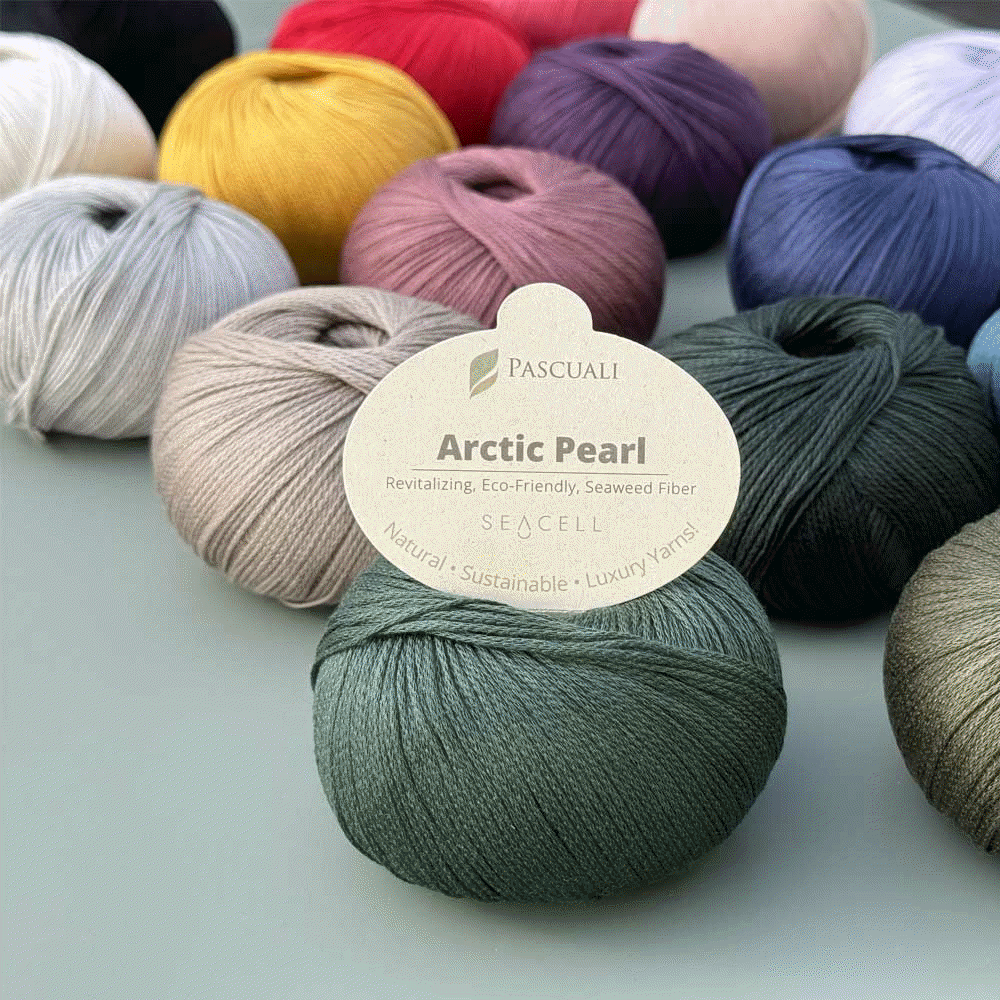 Artic Pearl, the only vegan yarn of its kind, is a luxurious yarn made with 100% Lyocell (SEACELL) fibers, a blend of 19% pure brown seaweed from Iceland and 81% eucalyptus cellulose, resulting in a yarn that benefits both skin and body. This innovative yarn features 100% Lyocell (SEACELL) fibers, allowing your skin to harness the power of nature. Arctic Pearl wraps your skin in luxury and moves in harmony with the Earth—a perfect choice for the eco-conscious knitter who values beauty and sustainability.